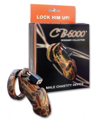 The CB-6000 Designer Collection - CBX Male Chasity 3.25 inches Camouflage Cock Cage dimensions: 3 1/4 inches length 1 3/8 inches inside diameter cage - most popular size. 5 ring sizes 1/2 inches Diameter, 1 5/8 inches Diameter, 1 3/4 inches Diameter, 1 7/8 inches Diameter 2 inches Diameter. Camouflage is the CB-6000 Male Chastity Device in a beautiful Camouflage finish. The CB-6000 Designer Collection Male Chastity Device is a new innovative design offering the utmost in comfort and security. The new ring design consists of three interlocking pieces that fit together like a puzzle. The two guide pins hold the top pieces together. The oval locking pin goes through the middle recessed hole connecting the cage portion to the ring. The flat design of the rings is extremely comfortable and secure. The finish of the CB-6000 Designer Collection Camouflage is an exceptional durable overlay on our lightweight medical grade polycarbonate material. The cage portion is vented for hygiene and has a bottom opening allowing use at urinals. The different size rings and spacers included in each package allow you to customize your fit to your individual needs. The CB-6000 Designer Collection restricts you from touching your genitals for sexual pleasure and gives the Keyholder control over the sexual fulfillment of both partners.