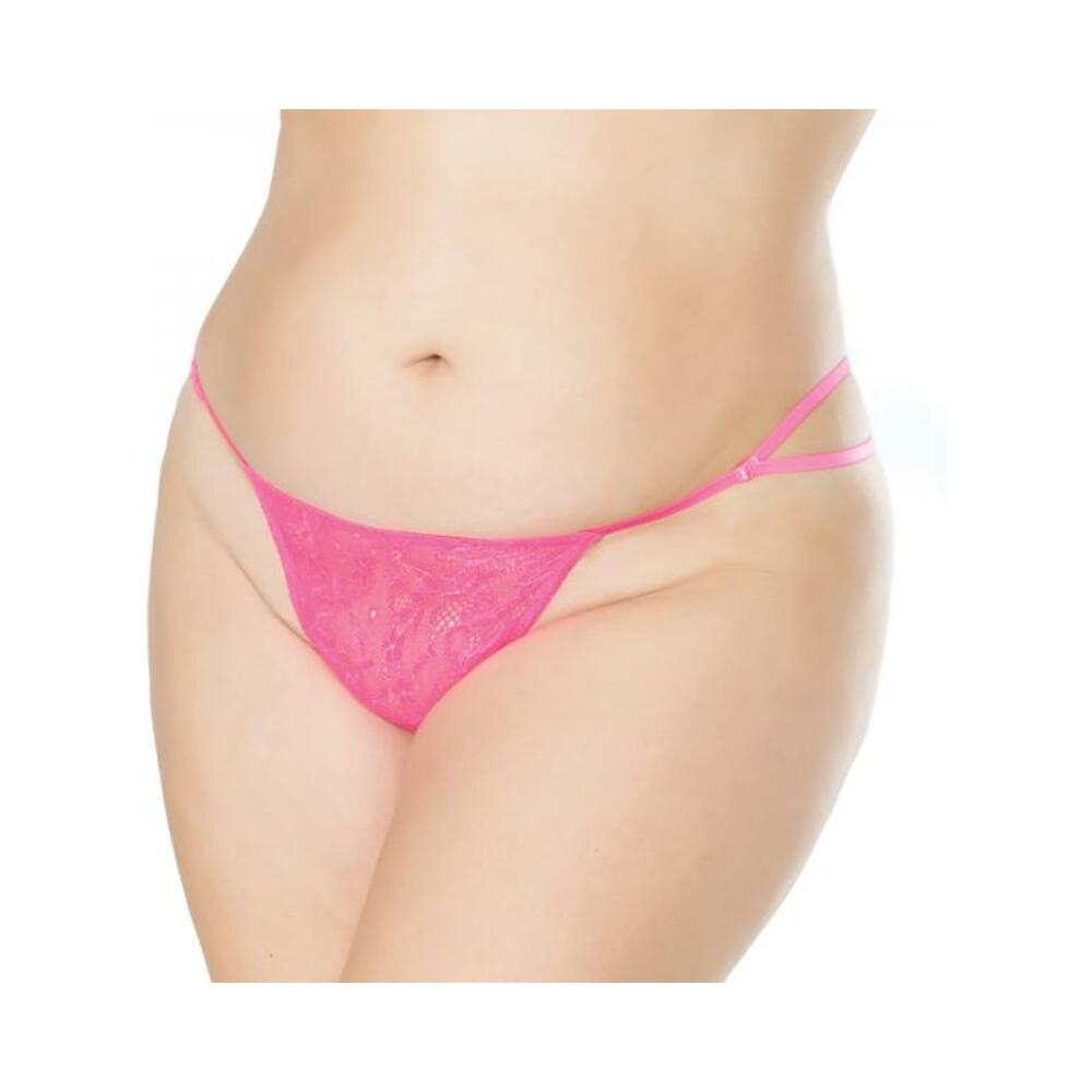 Adjustable side straps. Low rise. Hot Pink. Stretch Lace. Size OS XL: Bust 40-50", Waist 32-42", Hip 42-52", Cup C-H, Dress 14-18