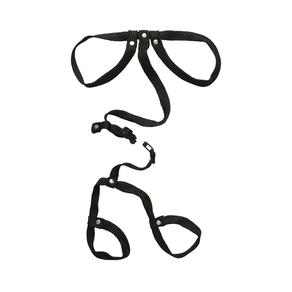 Adjustable Rope Bondage Restraints (Black) Flat soft braided rope that adjusts to 40 inches. No knots to tie. Simply pull the built-in side-ties to tighten each of the four loops for endless possibilities. Part of Sportsheets Sex Mischief Collection (Sex and Mischief).