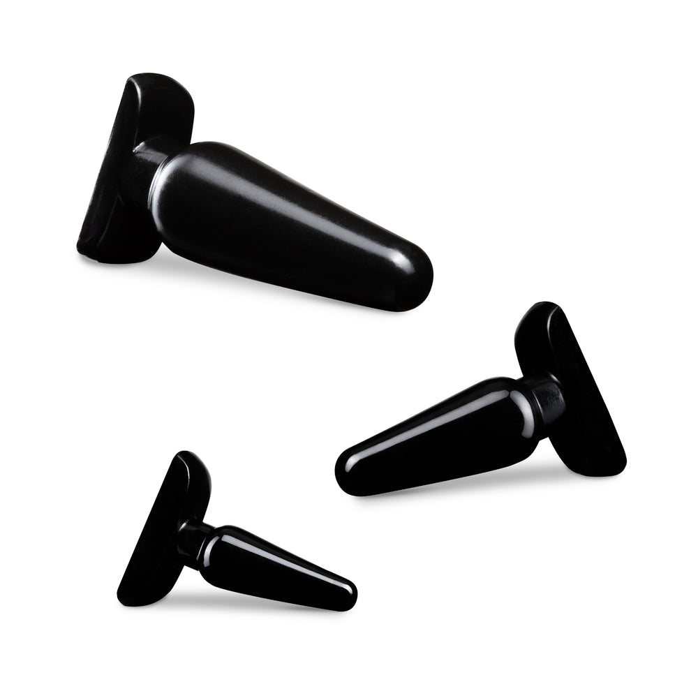 For anyone looking to explore new anal sensations alone or with a partner! Anal Adventures provides many anatomically targeted options to choose from. The Basic Plug Kit includes 3 graduated plugs for convenient anal training. Their tapered shapes are easy to insert and will help you size up comfortably. Perfect for Exploring New Sensations. Evenly Spaced Plugs Let You Stretch Safely & Comfortably. Tapered Shape for Easy Insertion Made from Non-Porous PVC. Contains No Fragrances, Phthalates, Paraffins, or Latex •SIZE - 3 Sizes: Small (4 Inches), Medium (4.75 Inches), and Large (6.5 Inches)