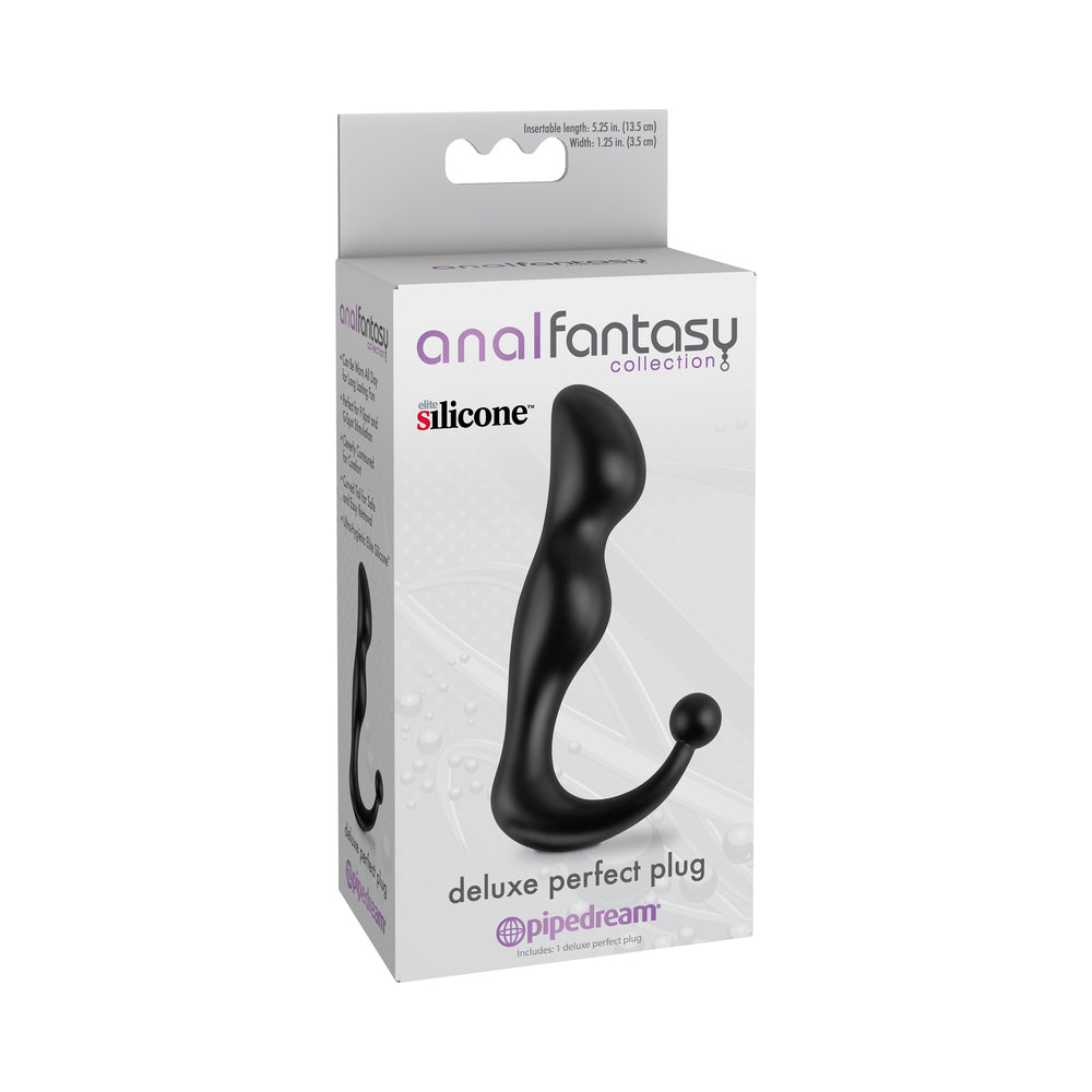 If you've never tried anal play, this Deluxe Perfect Plug is just what you need to explore the amazing world of anal stimulation. At 1.25in. wide with an insertable length of 5.25c, the Deluxe Perfect Plug has a tapered tip for easy entry, bulbs that provide extra sensation, and a narrow neck that allows your muscles to wrap around and hold it in. The ergonomic design of the base ensures it won't slip too far inside while still fitting comfortably between your cheeks. Our ultra-hygienic Elite Silicone™ is phthalate-free, hypoallergenic, and can be worn all day for long-lasting fun. Cleanup is a snap after the fun with the included Refresh Anti-Bacterial Toy Cleaner and warm water. Every Anal Fantasy box features a FREE 5-Piece Prep Kit to help you ease into comfort and clean up afterwards. The kit includes 2 finger sleeves, anal desensitizing cream, anal lube, and toy cleaner. Every Anal Fantasy box features a FREE 5-Piece Prep Kit to help you ease into comfort and clean up afterwards. The kit includes 2 finger sleeves, anal desensitizing cream, anal lube, and toy cleaner. Insertable length: 5.25 in. (13.5 cm) Width: 1.25 in. (3.5 cm)
