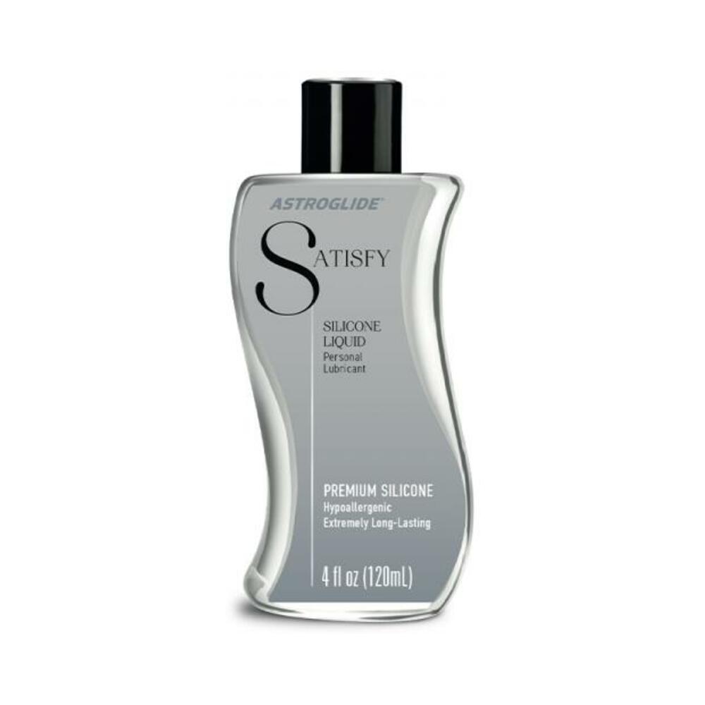 New Astroglide Satisfy, designed for pleasure with a formula you can trust.From a long, steamy evening in the hot tub to a morning quickie in the shower, there�s never a dull moment with our waterproof and hyper-slick premium silicone lube. This personal lube lets you take the fun beyond the bedroom, and into the water where you don�t have to worry about leaving a stain. Made with a unique blend of high-quality ingredients, our silky-smooth formula feels great on skin and is perfect for keeping the play going and pleasure coming for hours. Look no further for a personal lubricant that works magic in the water and on sensitive skin. Our lube keeps the fun going so you don�t have to worry about irritation. #1 Silicone Lubricant Brand* Premium Silicone Liquid Extremely Long Lasting Waterproof Hypoallergenic USA Doctor-Recommended Brand Condom Compatible** INGREDIENTS: Cyclopentasiloxane, Dimethicone, Cyclohexasiloxane