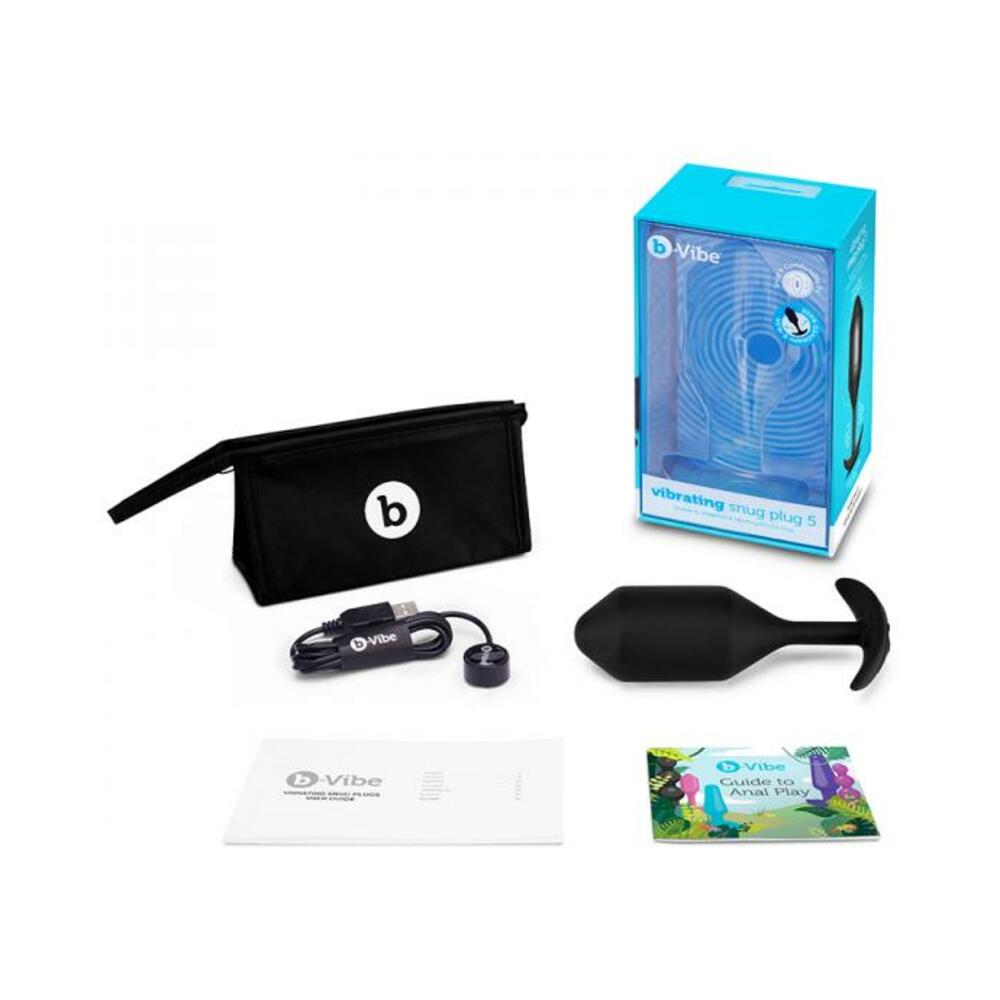 Combine the deep feeling of fullness and powerful vibrations to experience spine-tingling satisfaction like never before! Say hello to the b-Vibe Vibrating Snug Plug. Available in sizes that escalate from 1 to 5 to accommodate any body and anybody, the Vibrating Snug Plugs are perfect for anal training and extended play. The plug lives up to its name by fitting snuggly in your bum, while the weighted balls keep your fanny filled with pleasurable pressure! Experiment with the 6 vibration patterns and 4 intensities and delve deep into decadence with a double stuffing of sensations. Made from premium-body safe silicone, the Vibrating Snug Plug is the perfect toy for prostate stimulation, solo masturbation, or couples play. Powerful Vibrating Bullet — We took our award-winning weighted butt plugs and added a mighty vibe to bring you the best of both worlds. 4 Vibration Levels & 6 Vibration Patterns — Vibration is a characteristic that offers both pleasure and relaxation; A winning combination if anal penetration is your end goal. Available in 5 Sizes — From beginner-friendly to advanced, the vibrating snug plugs come in five graduating sizes and weights to keep your booty filled. 100% Body Safe — The vibrating snug plugs are made soft, seamless silicone that is phthalate-free, latex-free, and completely non-porous. Designed for Discretion & Extended Wear — The torpedo shape of the vibrating snug plugs makes them easy to insert and stay comfortably put. Be sure to keep your plug well-lubricated if you intend on wearing it long-term. USB Rechargeable & Travel-Friendly — An hour's charge provides an hours play. On the go? Vibrating snug plugs come with a travel-sized storage bag to take on your next (anal) adventure. Includes Guide to Anal Play — We’ve included the best tips from our trusted team of sex educators in a handy little booklet. Now there's no stopping you from becoming an anal guru! 1-Year Limited Warranty — The vibrating snug plugs are covered against defects in materials and workmanship for 1 year. Put your mind at ease by registering your b-Vibe. Insertable Size: 15 cm / 5.9 in Diameter: 4.9 cm / 1.9 in Neck Diameter: 1.3 cm / 0.5 in Neck Length: 3.9 cm / 1.5 in Base: 7 cm / 2.7 in Size: 16.5 cm / 6.5 in Insertable Size: 15 cm / 5.9 in Neck Length: 3.9 cm / 1.5 cm Diameter: 5 cm / 2 in Neck Diameter: 1.3 cm / 0.5 in