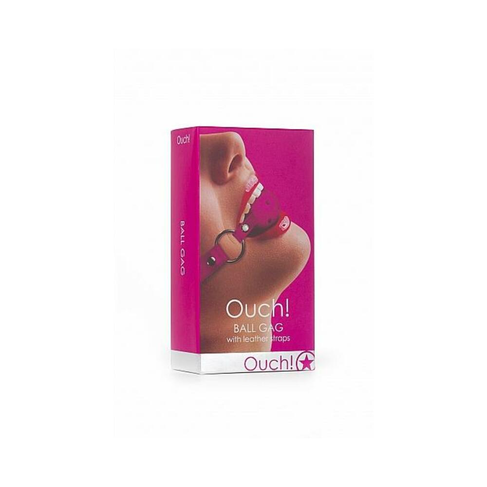 Ouch Gag Ball Pink. You love a naughty game? Keep you lover quiet with this distinctive breath ball gag. This gag has quality leather straps with elegant stitching down the length of the straps. The strap has 10 holes to adjust the length. One size fits all. Use this toy on its own, or in combination with other products of Ouch! Materials Leather, ABS plastic. One size fits most. Adjustable by 10 holes. Dimensions package 3.54 inches by 1.97 inches by 6.69 inches. Weight package 3.07 ounces. Materials Leather and ABS plastic.