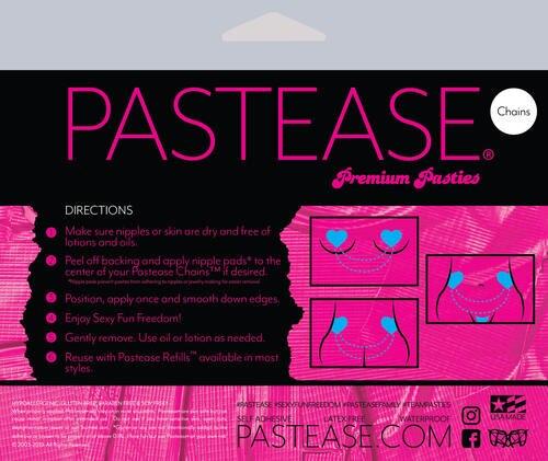 Black Shattered Disco Ball Heart with Gold Chains Pasties from Pastease Brand. All Pastease are hand-made in the USA of soft form fitting material that forms seamlessly to curves and resists wrinkling over hardening nipples. Just peel and stick on clean, dry skin. All Pastease feature latex free, medical grade, waterproof adhesive that stay securely in place for as long as you like and until they are gently removed.Conceal or reveal with Pastease nipple pasties when worn with a sexy outfit, daring bikini, sheer top, revealing dress, Hefty bag, body lotion, crazy costume, party theme or nothing at all! Dimensions 3 inches by 2.5 inches. Coverage diameter 1.8 inches. Pastease are the fun maker that brings out your inner Tease!