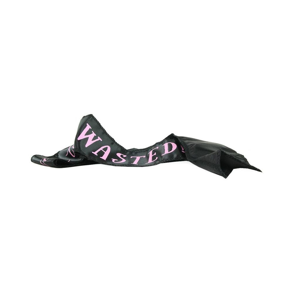 A black sash which reads, Bride-to-Be...WASTED! in pink lettering. Great for bride-to-be parties where the goal is to get people to buy her drinks. One size fits most.
