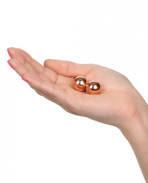 The blushing Climax Weighted Balls are sculpted to naturally increase stimulation, improve sexual satisfaction and increase pelvic muscle strength. Increase sexual arousal and delightful stimulation as the petite weights ripple in harmony with your every movement. Naturally tone and tighten pelvic muscles to improve orgasm intensity and reduce risk of incontinence. The carbon free steel is electroplated for a blushing copper color. Each weight diameter measures 0.75 inch. Dimensions ball diameter 0.75 inch. Package 1 inch by 4.25 inches by 8.5 inches.