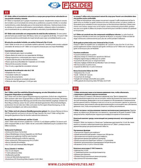 Cloud 9 F-Slider Pro Heavy Duty Self Pleasuring Chair sex machine with bonus attachments including storage cover. The F-Slider uses your natural body movement to provide stimulation in a comfortable seated position. The F-Slider is powered by your own body movement. Just simply attach the included dildo or use any suction cup dildo from your private collection. The moving parts need no maintenance and are designed for silent operation. Slide your way to ecstasy, have a seat on the custom padded thigh rests, position yourself over the dildo, and use your own body movement to control the thrusting speed and depth. The F-Slider is built with heavy duty metal components. The heavy framework is tested up to 400 pounds and comes with a 90 day warranty. The new F-Slider features over sized cushioned seats for comfort during use. Bonus Dildo Kit included with Universal attachments. Each F-Slider is shipped with a bonus 7 inches dildo and rubber dildo adapter. You can also mount any suction cup dildo to the F-Slider with the universal dildo mount for added flexibility. Improved features: enhanced cushion for comfort. New metal design with a 400 pound weight capacity. Ergonomic contoured handle for comfort. Discreet cover for easy storage. New enhanced f-depth adjustment with 3 levels. Bonus accessory kit included. Universal dildo capability. Bonus accessories estimated $100 value. Rubber Dildo adapter, 7 inches realistic dildo. Storage cover. Universal dildo mounting straps. Free HD Streaming video offer $14.95 value. Over sized box dimensions 18 inches by 21.3 inches by 18.1 inches. Shipping weight 24 pounds. Video. MAP price 599.00 added. 2 new package images.