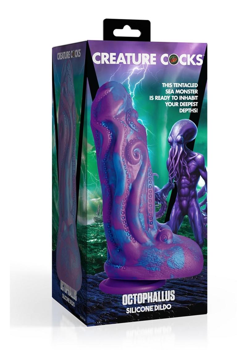 This intricate dong is wearing the long, grasping arms of a small octopus. The purple and blue color stands out among other toys and the realistic-shaped shaft can almost be seen behind the long ridges of cephalopod limbs. Made out of premium, phthalate-free silicone, it has a firm core and soft, silky surface. Explore every sci-fi, fantasy, roleplay or cosplay scene you want with this epic adult toy! Use only with water-based lubricants for best results. After play is over, wash the dildo with warm water and soap and use a toy cleaner to spray clean. Wipe dry and store in a cool, dark place out of direct sunlight.It was my third year returning to the Indian Ocean for the summer. The big-blue octopus was a commonly seen cephalopod there and I'd decided to make the study of them my major. They were fascinating creatures but deep down I know I had other reasons to study them, ones I would never admit to in my research. The sun was beating down on me that day so hard that I felt like fainting, so I took out the small boat and set out to visit my octopuses. The water welcomed me like a long-lost lover as I dipped in with nothing more than my dive gear and a tight-fitting suit. I didn't have to go very far before finding what I was looking for. It was expecting me, after all. The mysterious, small, purple-blue octopus that had mystified me ever since my first visit here and convinced me to study these creatures swam up to me and immediately landed on my arm! It wrapped its tentacles around me, saying hello. This fully grown octopus was smaller than the normal blue octopuses I'd seen, but I knew it would grow bigger in time. Even though it was a venomous kind that packed a powerful bite and had an inky discharge, it hadn't harmed me even once in all this time. Instead, it did what it always did… it explored. It began playing with my zippers and ties. It started pulling at them, finding openings in my clothes and reaching inside. As usual, it wrestled open my fly and reached inside to pull out my shaft. I'd remained flaccid but once this little octopus started wrapping its limbs around me I began to swell with excitement! The limbs undulated and squeezed, milking a drip of salty-sweet liquid from the tip of the head that this octopus enjoyed. It began to pulse and tighten, and as it did I let myself float, weightless in ecstasy, as it milked me until I burst, the thick fluid bursting free of my shaft and hanging there like its own inky discharge in the water, glistening in the afternoon sun.Measurements: Overall length: 8.8 inches. Insertable length: 7 inches. Narrowest insertable diameter: 1.8 inches. Widest insertable diameter: 2.4 inches.Materials: SiliconeColor: Purple, blue Key Features: Fantasy Dildo: This purple and blue, realistic-shaped rod has the long limbs of an octopus wrapped around it, giving it smooth ridges and slightly textured grooves that stimulate you as you ride! Suction Cup Base: Enjoy the wide, suction cup base of this dildo. Simply press firmly on any flat surface and enjoy riding it hands-free! Harness Compatible: The wide, flanged base is compatible with most strap-on harnesses so you can wear it and play the fantasy roleplay character you come up with! Premium Silicone: Made of body-safe, phthalate-free, premium silicone, it is best used with water-based lubricants only. Premium Silicone: Made out of premium, silky smooth, phthalate-free silicone it is soft and squishy on the outside while remaining firm on the inside. Use only with water-based lubricants.