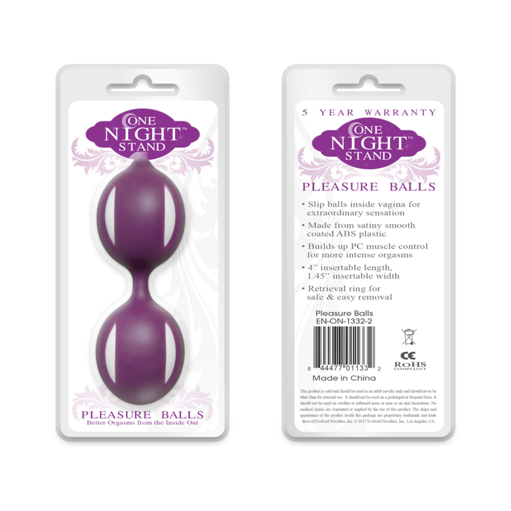 ABS plastic pleasure balls strengthen PC muscles for more intense orgasms. With retrieval ring for safe and easy removal. Measures 4 in. by 1.45 in.