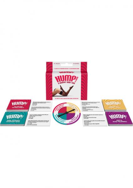 Hump The Game from Kheper Games. The game of erotic education and sexual satisfaction. You and your lover learn about each other's libidos while answering sex tip related questions. The person who answers ten questions correctly first, wins, and gets to select the sex tip the couple acts out. Includes 40 sex position trivia cards, 40 foreplay trivia cards, 40 unique experiences trivia cards, 40 down and dirty trivia cards, a spinner and game rules.