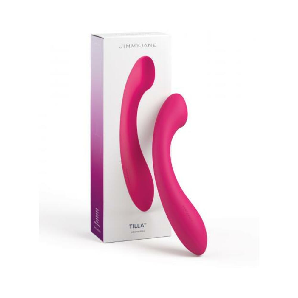 JimmyJane Tilla Silicone Dildo from Pipedream Products. Phthalate free, latex free Silicone Dildo features an expertly sculpted G-Spot curve to stimulate all the right places. Do not forget to try it in the tub or shower the Tilla Silicone Dildo is completely waterproof. Features: Phthalate free, latex free flexible Silicone. Used by women, men, and couples. Great for Vaginal, G-Spot or Anal stimulation. Waterproof; fully submersible and bath friendly. Includes cloth storage bag. Size: insertable length 5.9 inches. Length 7.9 inches. Handle diameter 1.5 inches. Head width 1.2 inches. Head depth 1.4 inches. Material: 100% FDA cleared Silicone. Cleaning: spray JimmyJane Antibacterial Cleaner on the massager before use. Wipe with a clean, dry cloth and let it air dry. Repeat after use and store in a cool, dry place. Warnings: this product is intended for adult use only. Use water based lubricants only. Categories: Anal Toys, Prostate Massagers, P-Spot Stimulators, Dildos, Dongs, G-Spot Dildos. 2024.
