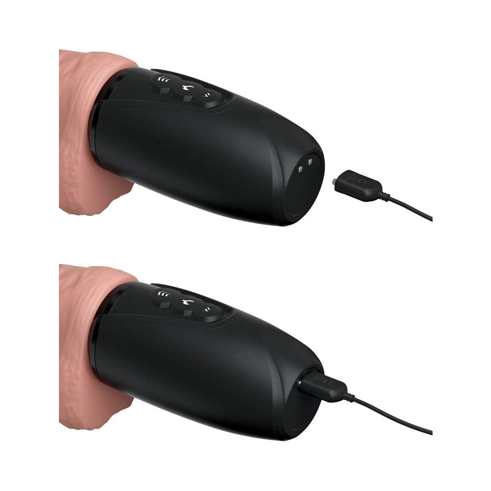 The King Cock Plus Thrusting Cock With Balls is truly a triple threat that features 1” deep piston-powered thrusting motion, internal warming up to body temperature in minutes, and powerful stimulating vibrations for the ultimate experience. Thrusting pleasure is designed to be naturally responsive, massaging your every movement—fast or slow. The simple press of a button activates the 7 unique functions of the vibrating motor, which is strategically located at the Thrusting Cock’s tip for pinpoint pleasure internally and externally. For optimal stimulation, dynamic vibration combined with responsive thrusting action and internal warming creates explosive orgasmic results every time! KEY PRODUCT FEATURES 1" Thrusting Action: 7-function, piston-powered thrusting action pushes the dildo up to 1” (25mm) deep, pushing to all of those hard-to-reach places. Internal Warming Mode: The King Cock Plus Thrusting Cock has a warming feature which brings the Fanta Flesh exterior up to body temperature in a matter of minutes. Stimulating Vibration: With a touch of a button you can activate the Thrusting Cock’s 7 modes of stimulation vibration. Total Length: 10.7 in. (27.1 cm) Insertable Length: 5.5 in. (14 cm) Insertable Diameter: 1.4 in. (3.6 cm) Materials: TPE & ABS Plastic Weight: 0.7 lbs. (11.2 oz)