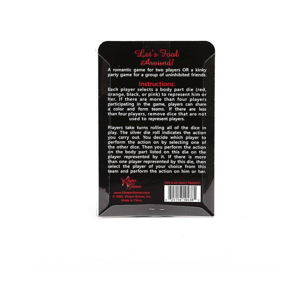 Lets Fool Around Dice GameA romantic game for two players or a kinky party game for a group of uninhibited friends. After a player rolls, he decides whose body part he'll perform the action on, based on who each die represents and what is rolled.