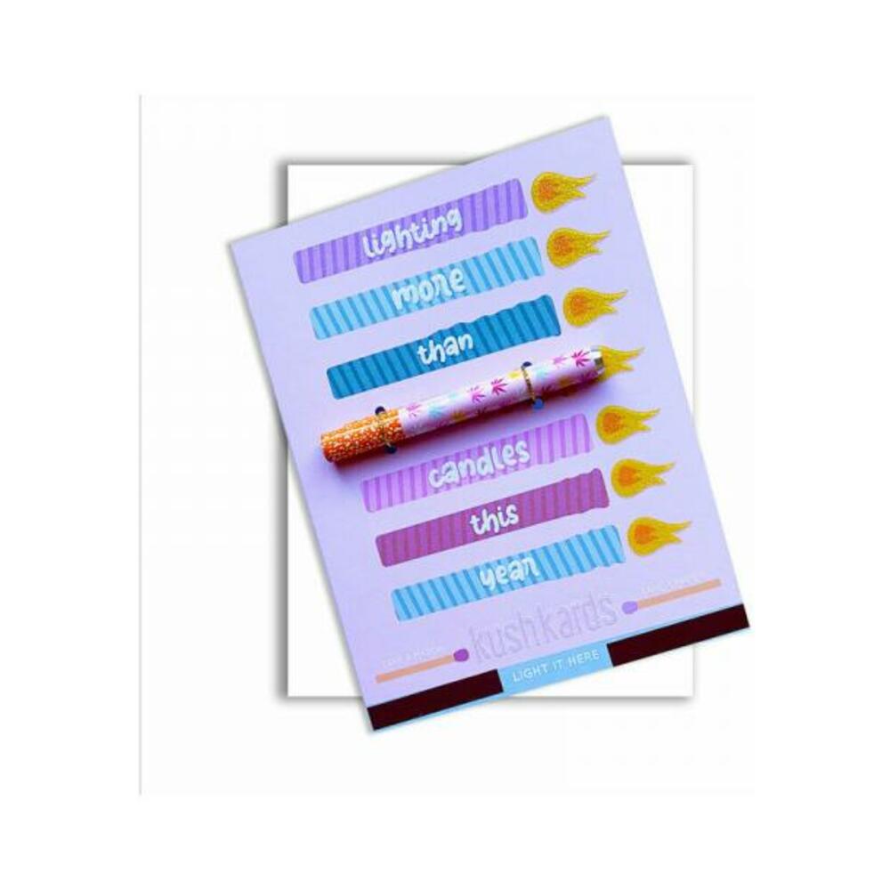 Because what stoner isn't lighting more than just candles? The Lighting More Than Candles Cannabis Greeting Card is for those ready to get lit. This one of a kind stoner birthday card is top quality with a shine of glitter in the flames. Includes Metal Multicolored One-Hitter Pipe.Inside: Let's Get TurntThe Original Cannabis Greeting Card AKA the Gift with a Lift. KushKards are colorful, clever, fun, and unique greeting cards for the cannabis enthusiast and their friends. Made on high-quality paper in the USA.DISCLAIMER: IT IS ILLEGAL TO MAIL ANY PRODUCTS CONTAINING MARIJUANA