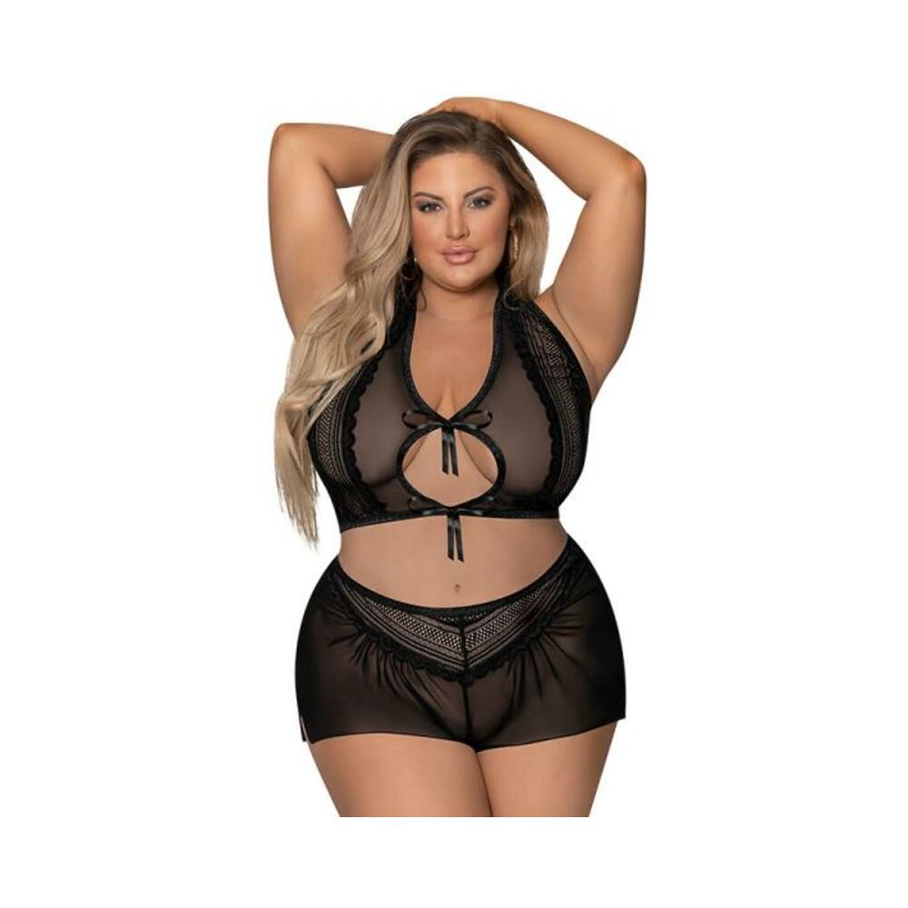 Magic Silk Modern Romance Haltr & Tap Panty Black Queen Size