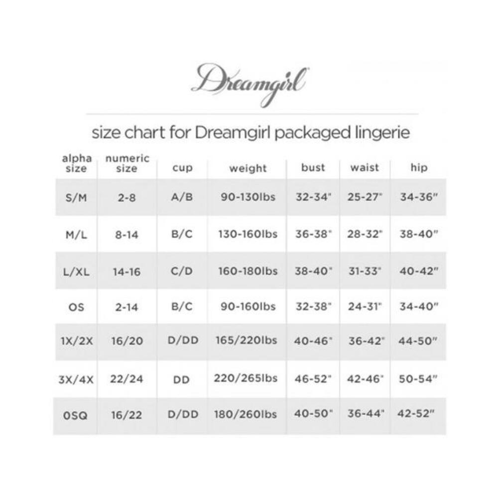 Miss Behavin Gothic Schoolgirl Costume Set Black Q/S Dreamgirl Lingerie. One size Queen OSQ fits ladies sizes 16 to 22. Cups D/DD. Bust 40 inches to 50 inches. Waist 36 inches to 44 inches. Hips 42 inches to 52 inches. Categories: Restricted, Amazon Restricted. 2024.