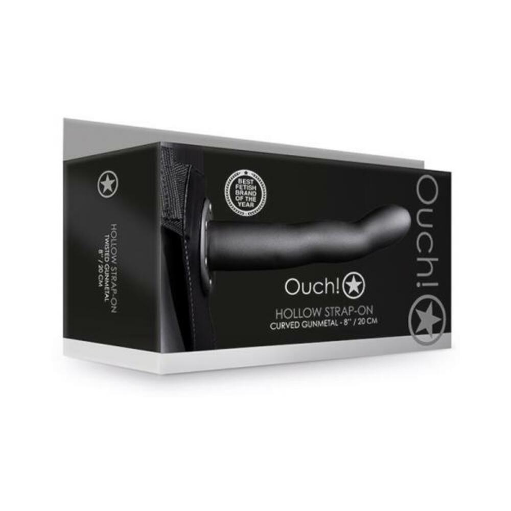 Ouc! Curved Hollow Strap-on 8 In. Gunmetal Gray