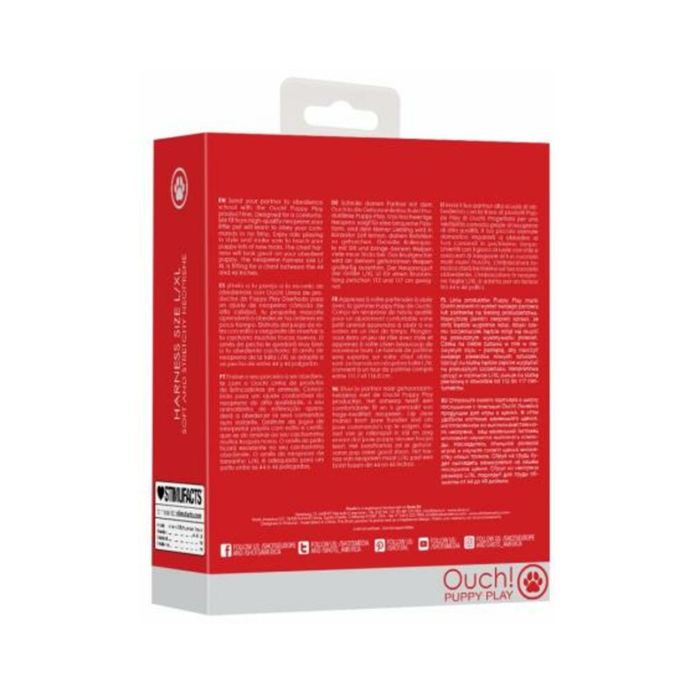 Send your partner to obedience school with the Ouch! Puppy Play product line. Designed for a comfortable fit from high-quality neopreneandnbsp;your little pet will learn to obey your commands in no time. Enjoy role playing in style and make sure to teach your puppy lots of new tricks. The chest harness will look great on your obedient puppy.andnbsp;The neoprene harness size L/XL is fitting for a chest between the 44 and 46 inches.andnbsp;