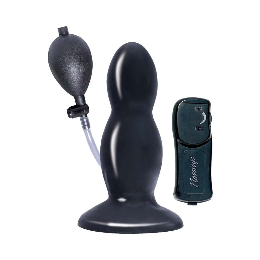 Expand your orgasms. Just pump up the volume of this inflatable latex variable-speed vibrating butt plug to super size. Length 5.5 in., width 1.70 in. Phthalate free. Water-based lubricant recommended. 2 AA batteries.
