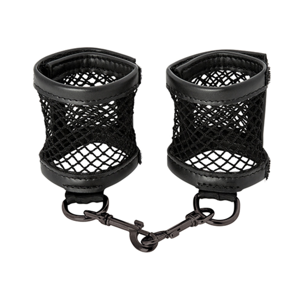 Evoke the passion from within and let the inner deviant come out to play. Entice your partner by adding the finishing touch to your favorite piece of lingerie with the Fishnet Cuffs. When you’re wearing these this erotic fishnet look your paramour won’t be able to resist keeping their hands off of you. In addition to their devastatingly sexy look, you can adjust the size of these Fishnet Cuffs with the hook and loop closure. Use the easy off/off closure to secure cuffs in place, that includes 2 snap links that can easily be attached to your favorite restraint system. To make a statement pair with the Fishnet Paddle, Fishnet Collar and Leash, and Fishnet Ball Gag. COLOR: BLACK@np2020-62