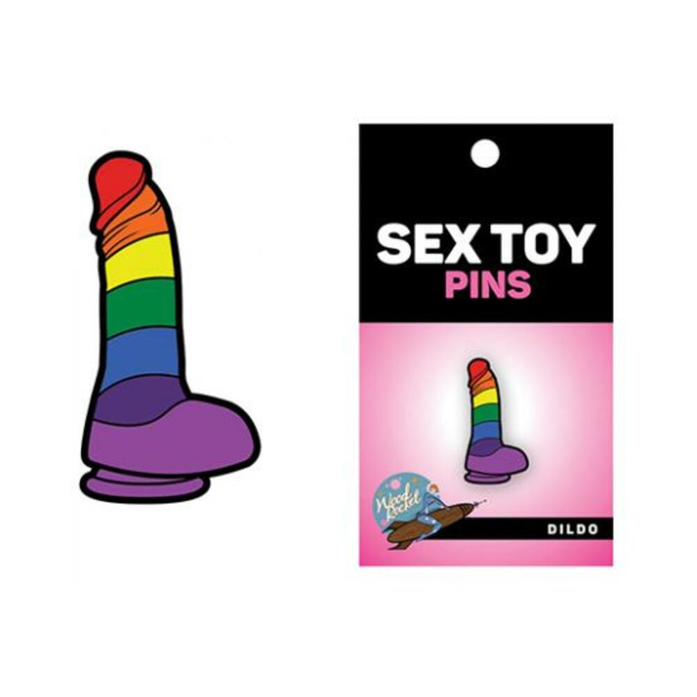 This fun soft enamel lapel pin by Wood Rocket is the perfect accessory. Wear your sex product pride! This Dildo Sex Toy Pin is rainbow colored and looks just like a dildo but it's tiny! Stick it on your hat or clothes or backpack or bag or purse it or give it as a gift!