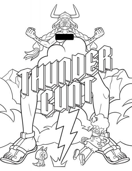 Suck My Crayon Coloring Book from Wood Rocket. Swear word coloring book. Three sample pages are shown: page 1 first cover page. Second page thunder cunt, artist easel with man painting the F word, The last picture features an interesting ass hole. Adults only please.