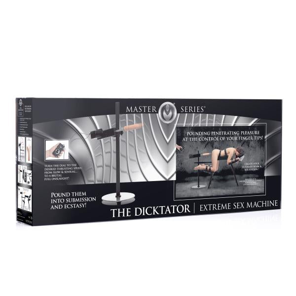 Create your ultimate BDSM and sex station with this versatile sex machine! The Dicktator provides pounding, penetrating pleasure at the control of your fingertips. This machine was designed to mount to the Obedience Sex Bench for non-stop screwing while they are comfortably restrained, but it is also a convenient machine for use without. Get creative with your bondage set-up and simply add the Dicktator in with its customizable stand. The mounting arm adjusts in length and height. Adjust the height and angle of the machine to fit your partner perfectly. You can even adjust the thrust length! Use the multi-speed dial to play with various thrusting speeds, from slow and sensual, to rapid and ravishing. The thick, veiny dildo is compatible with silicone and water-based lubricants and easy screws onto the thrusting arm. The durable steel frame of this fucking machine will stand up to vigorous use through many play sessions. You will dictate the pounding your partner receives! Measurements: Stand is 34.25 inches in height, with a 13.75 inch diameter base. Connector bracket is 21.5 inches in length. Thrust length adjusts from .5 inch to 3 inches. Dildo is 7 inches in length, 2 inches in diameter. Material: Machine is made of steel and ABS plastic. Dildo is made of TPE. Color: Black. Note: US 110-220v power cord included. Includes an allen wrench and machine lubricant. Obedience Sex Bench AF514 sold separately.