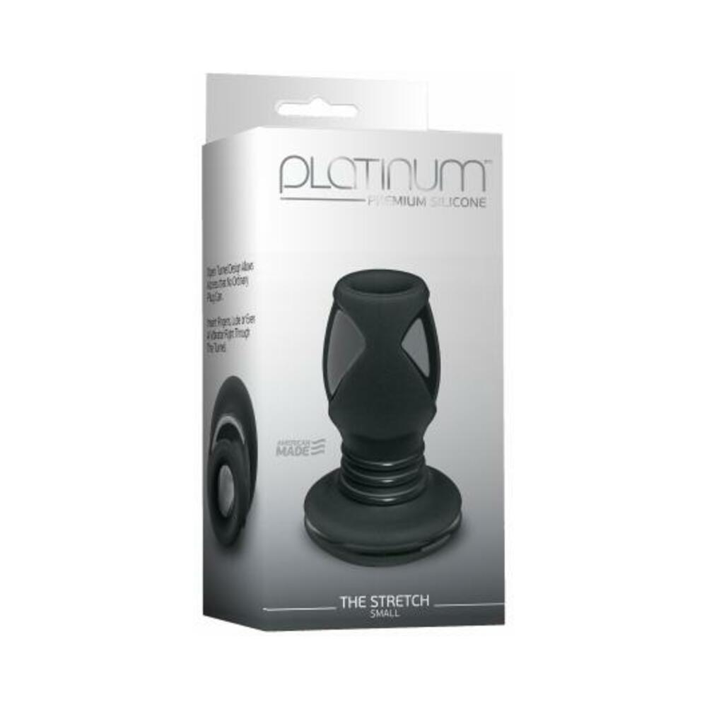 Explore your partner's backdoor with this open tunnel anal plug from the Platinum Premium Silicone collection! Firm yet flexible, The Stretch Small delivers the satisfying filling sensation of a regular plug, but also features a hollow bodied design allowing access that no other plug can. Insert fingers, lube, or even a vibrator right through the tunnel, for endless possibilities in bedroom play! Made of health grade silicone, this plug reveals a two tone finish for increased stimulation, a flat base for comfortable wearability. Platinum Premium Silicone Small Butt Plug: total length 3.4 inches, usable length 2.9 inches, width 1.7 inches, circumference 5.34 inches. Open tunnel design. Two tone finish. Warms to body temperature. Flexible body with comfortable flat base. Hypoallergenic. Phthalate free body safe materials antibacterial Sil-A-Gel formula. Proudly, made in America.