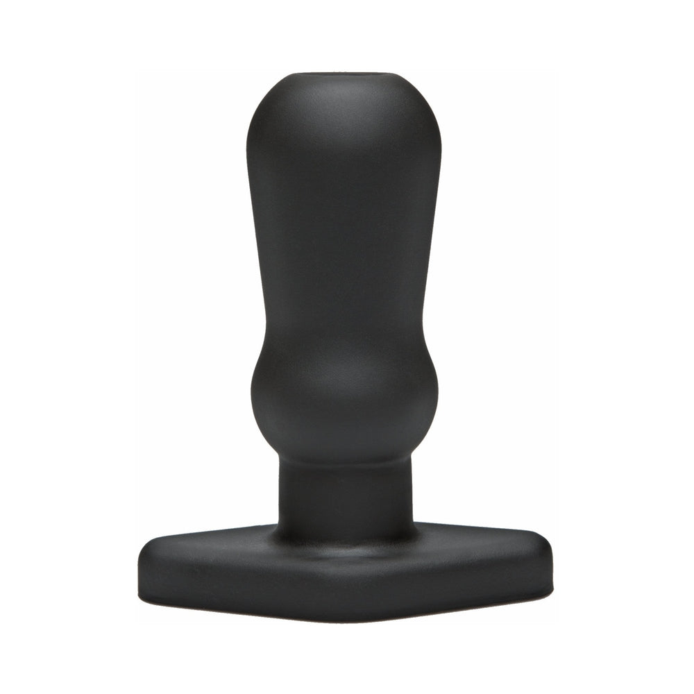 Explore the backdoor with this open-tunnel anal plug. Firm yet flexible, it delivers the satisfying filling sensation of a regular plug, but also features a hollow bodied design allowing access. Insert fingers, lube, or even a vibrator right through the tunnel with a 1 inch opening. Thick, cushioned material with a unique diamond shaped base is flexible and designed for all day wearability. Antibacterial Sil-A-Gel formula. Total length 4.7 inches, 4.3 inches insertable, 1.7 inches width.
