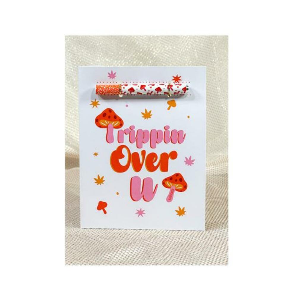 A card for when it's time to take a trip. Shop this Trippin Over You Cannabis Greeting Card for the ones you love very mush! This KushKard comes with the matching one hitter and comes blank on the inside so you can customize the occasion. Add your own ~psychedelics~ to take a trip with your loved one. Blank on Inside. The Original Cannabis Greeting Card AKA the Gift with a Lift. KushKards are colorful, clever, fun, and unique greeting cards for the cannabis enthusiast and their friends. Made on high-quality paper in the USA. DISCLAIMER: IT IS ILLEGAL TO MAIL ANY PRODUCTS CONTAINING MARIJUANA