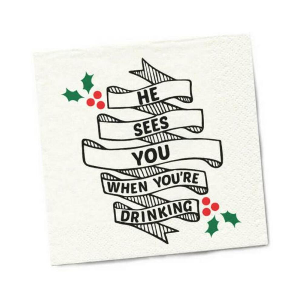 Twisted Wares He Sees You When You're Drinking Napkins 20-pack