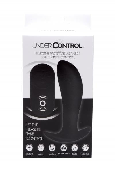 This beautiful new anal toy will make that booty quiver with the push of a button! Let the pleasure take control with this easy-to-use remote controlled, rechargeable prostate vibrator! Whether you appreciate the convenience during solo play, or the power during couples play, the wireless remote is an exciting feature for use at home or out on the town! Separate buttons allow you to move back and forth between 4 speeds and 7 patterns of vibration. The ergonomic base of this butt plug sits comfortably between your cheeks for long-term wear. Made of premium silicone, this pleasure tool is phthalate free for body safety, and non-porous for thorough sanitization. Clean this waterproof device after use with warm water and mild soap or toy cleaner. Measurement: 4.75 inches in total length, 4.5 inches insertable length, 1.25 inches at widest diameter. Remote is 2.75 inches in length, 1.25 inches in width. Materials Silicone, ABS plastic. Color Black. Note: instructions included. Charges via USB. Remote requires 1-CR2032 cell battery, included.