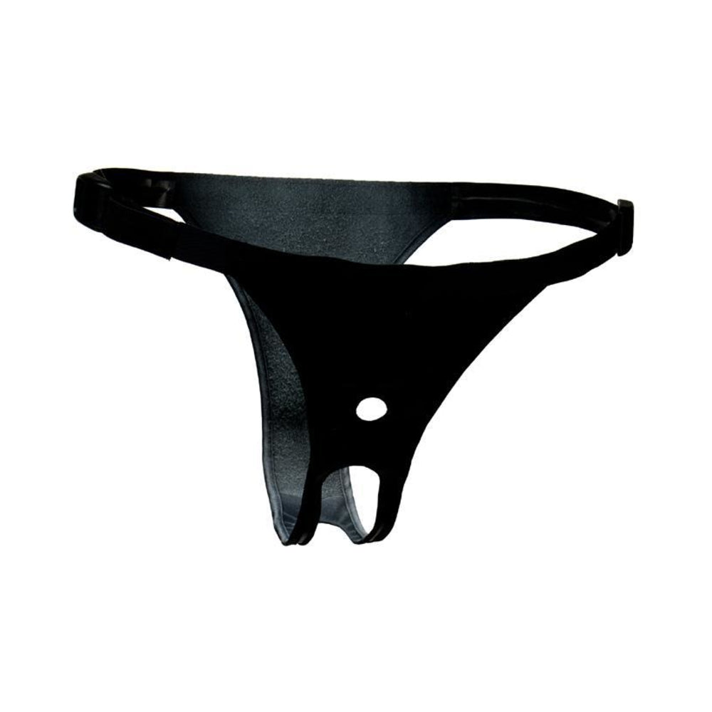 Harness has an adjustable waist up to 53 inches, an open crotch for maximum comfort, easy access, and non-slip action; all designed to give you command and control for erotic pleasures. This harness can be used by women or men. The opening under the plug is high enough to allow the penis to hang below. Just add a Vac-U-Lock attachment. Please note strap on harness only. Attachments and dildos sold separately.