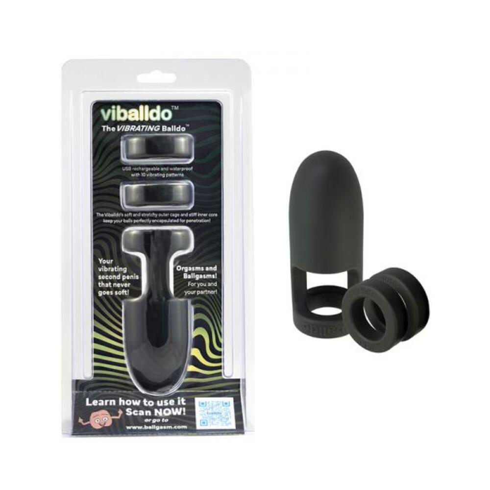 The World's first vibrating Ball-Dildo - penetrate and stimulate your partner with your balls! We are back with 'The Viballdo™', the world's first vibrating ball-dildo that lets wearers penetrate with their balls but also allows them to receive enhanced stimulation for both themselves and their partner from a powerful 10 - program vibrator motor buried in the soft tip. Not only does the patented Viballdo™ vibrate in the tip, but also down each of the legs that surround the scrotum giving pleasure around the scrotal raphe. For the wearer...The vibrations are designed to transmit from the tip down the harder inner core of the legs that make up the cage and are amplified for the wearer when inside a partner or a fleshlight type device. If neither of these are available then the hand can be used to masturbate the balls and increase the vibration feeling to the exposed skin of the balls. For the partner...The longer tip and better positioning of the balls in the Viballdo™ give a penetration experience similar to a dog or knot dildo - the balls protruding being the knot. The vibrations in the tip transmit down each of the legs and hence stimulate both the anal and vaginal G-spots when thrusting, the deeper vibrations in the head coupled with its 2" girth also give a pleasurable response. For both vaginal and anal sex, the Viballdo™ now gives a great deal of pleasure to both partners - something that the Balldo™ couldn't always do for the receiver... Stretchier Silicone: The Viballdo™ is made from a stretchier grade of silicone to make the Viballdo™ easier to get on and off. Vibration: The Viballdo™ has 10 vibration programs at the touch of a button and comes with a lithium rechargeable battery buried in the tip. Just plug into a USB port, charge up and enjoy! Shorter cage - longer tip: The Viballdo™ cage is 10mm shorter in length making your balls sit much more naturally in the soft cage. The tip of the Viballdo™ is also longer - allowing for deeper penetration and vibration. Softer: The Viballdo™ has a new silicone formulation that is also softer making it less intimidating for partners. Dimensions: 5" x 2" Packaging dimensions: 11.3 x 5.8 x 2.6 in. (28.6 x 14.7 x 6.5 cm) Packaging weight: 10.5 oz. (297 g)