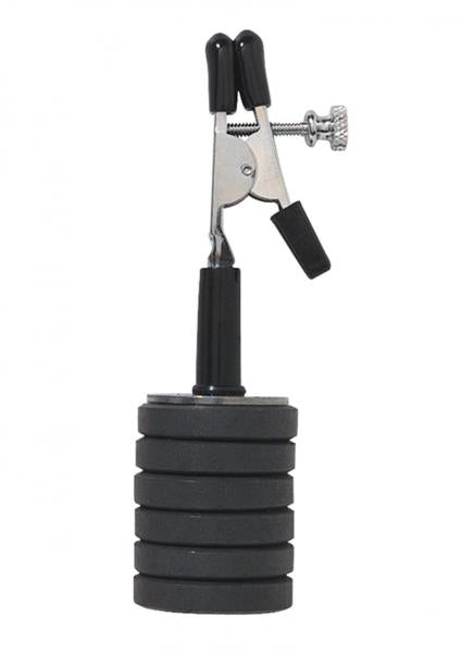 Adjustable alligator tipped nipple clamp with adjustable 6 oz. magnet weights.