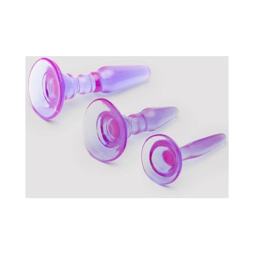 This 3-piece plug set was specifically designed to let work your way up the spectrum of backdoor pleasure. Each plug is uniquely shaped to deliver distinct sensations, the smallest (4.7 in.) is smooth and straight, the perfect starting point, while the large (6.9 in.) is nice and long with 2 exciting bumps texturing the lengthy neck. The medium (5.3 in.) is a perfect midpoint, mimicking the large on a smaller scale and packing a single bump. All three are nice and flexible for the best possible positioning, but firm enough to penetrate easily. A very distinct base on each ensures the plug won't travel too far in the anal cavity, letting you play worry-free.