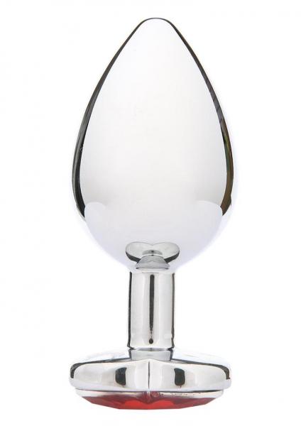 Sleek metal for firm penetration and a tantalizing red jeweled base, this large plug is for advanced users, with a flared base that keeps it safely in place.