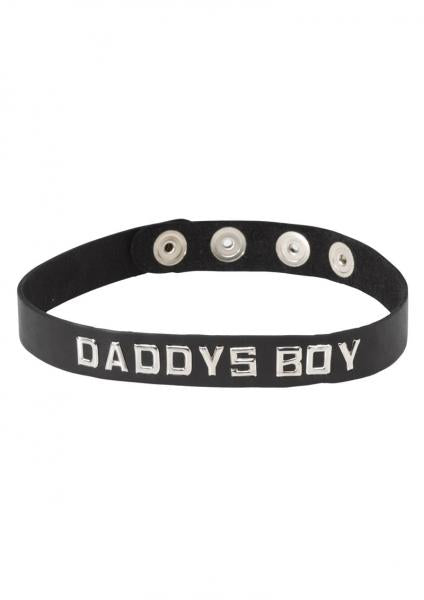 DADDYS BOY wordband leather collar, thick (1.25") or thin (0.75").