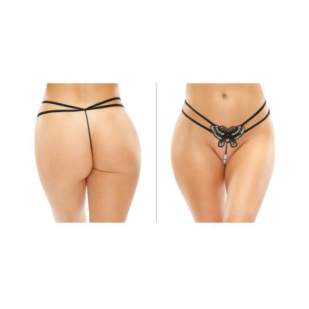 Sequin Butterfly Strappy Pearl G-String Brand: Bottoms Up Materials: 80% Nylon, 20% Spandex Color: Black